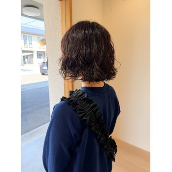 ミディアムからばっさりカットしてボブパーマに♪朝のスタイリングは5分でおわる簡単ヘアーです!!ストレートからイメージチェンジしたい方ニュアンスパーマも得意なのでお任せください◎